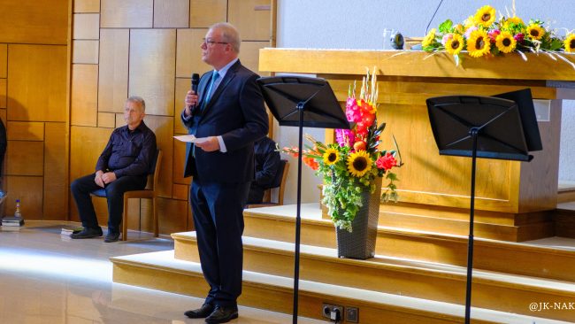 Superintendent Ralf Ermisch begrüßt die Gemeinde