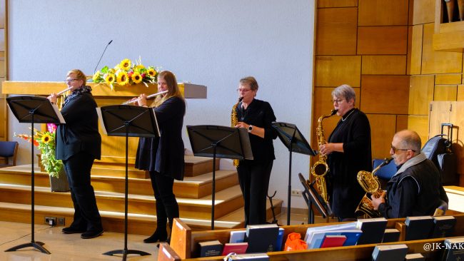 Der Projektchor des Kirchenbezirks Hamm unter Leitung von Sylvia Finnemann-Lepke und das Instrumentalensemble der Kirchengemeinde Hamm unter Leitung von Ulrike Naundorf-Runte trugen im vollbesetzten Kirchenraum gekonnt und engagiert religiöse Lieder und klassische Werke vor und begeisterten die Zuschauer. Die Beziehung von Mensch und Natur und der Dank für Gottes Segen und Gaben wurde mit diesem Programm eindrucksvoll dargestellt.