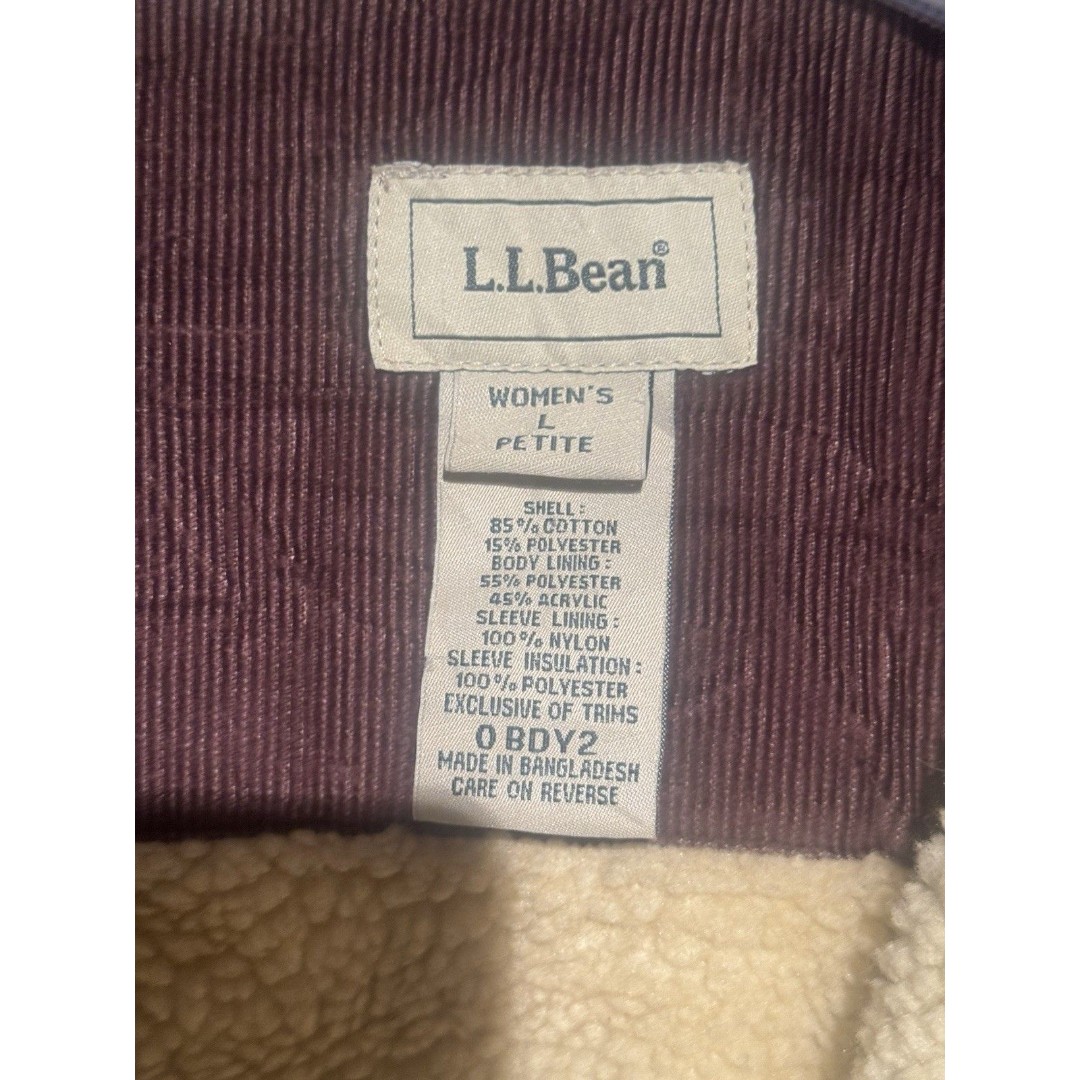 LL Bean Jacket Brown Womens Sherpa Lined Corduroy Jacket pockets button closure
